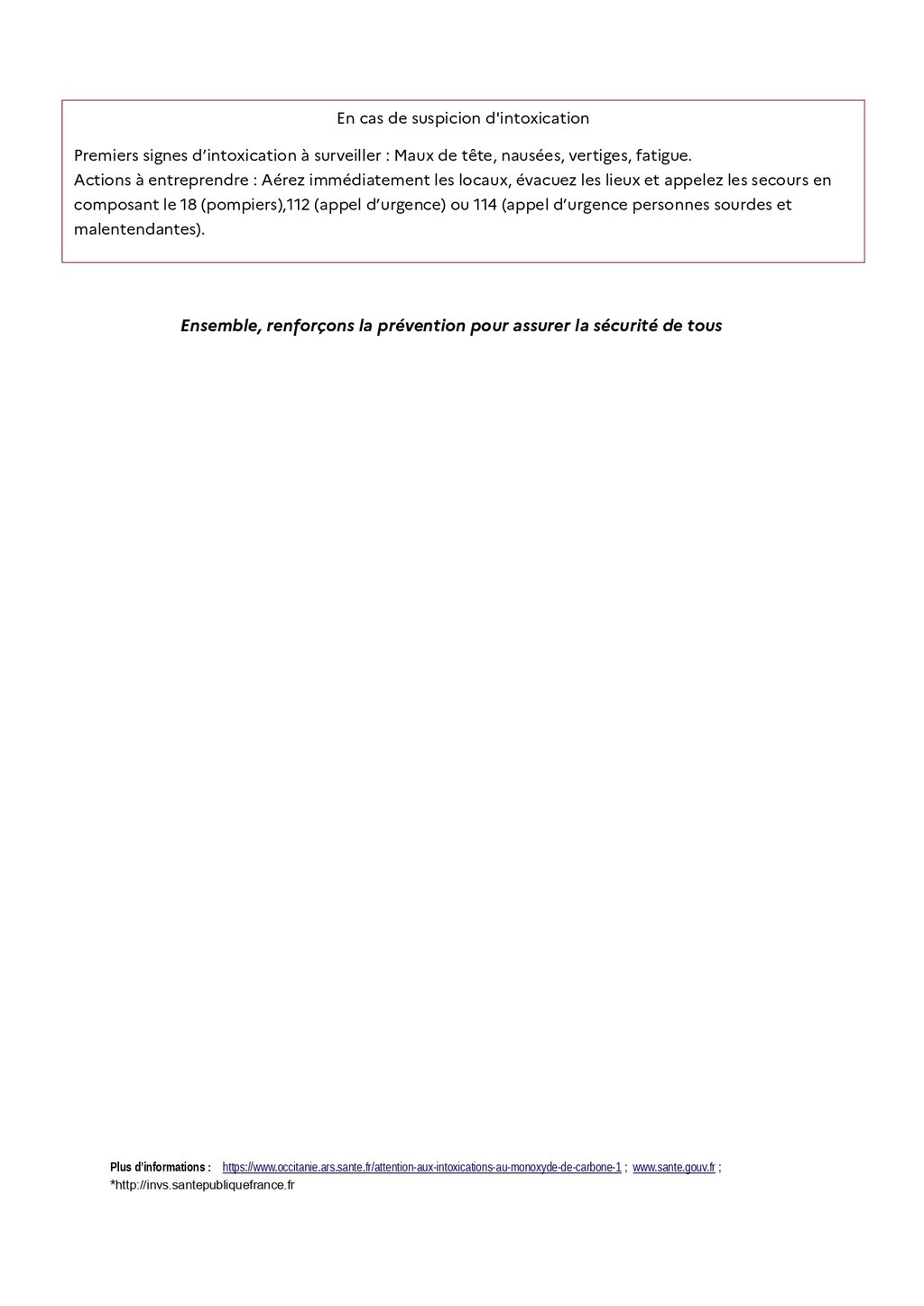 INFORMATION RISQUE INTOXICATION MONOXYDE DE CARBONE