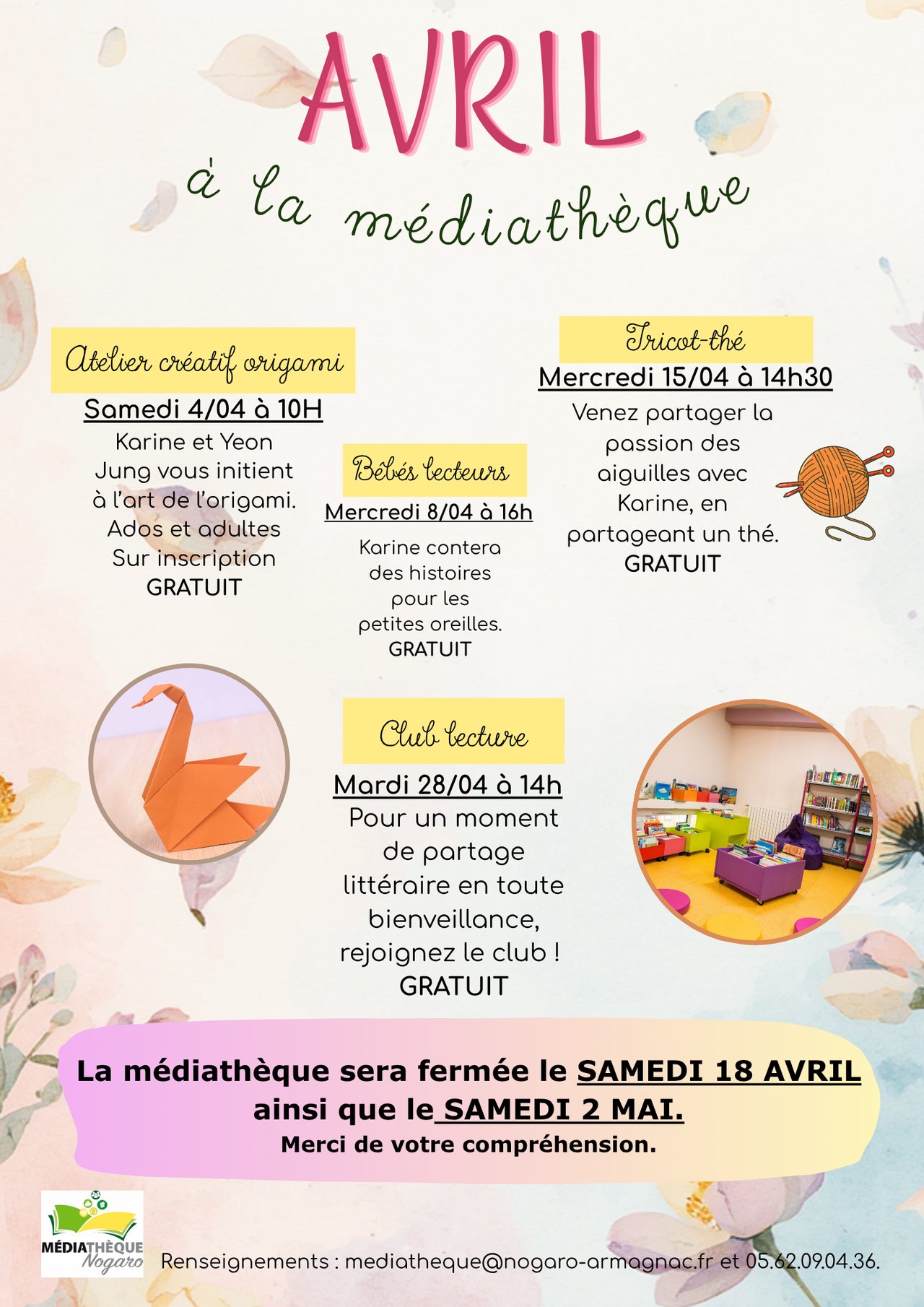 L'équipe de la médiathèque vous invite à découvrir son programme pour #avril.
