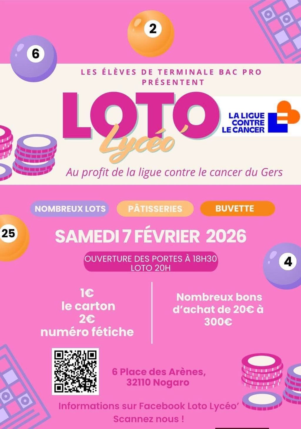 Les élèves de Terminale Bac Pro vous invitent à leur Loto Lycéo, organisé au profit de la Ligue contre le cancer du Gers.